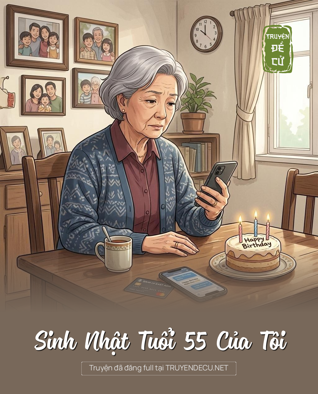Hôm nay là sinh nhật tôi. Tôi ở nhà đợi chồng và con gái đến chúc mừng.