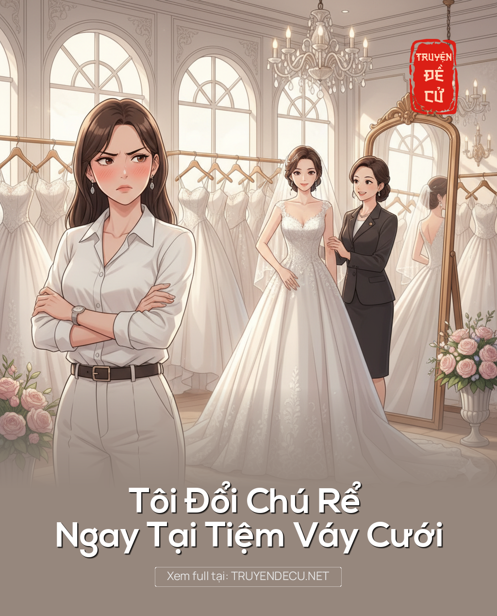 Tôi nhìn chính mình trong gương — một bộ đồ bình thường, hoàn toàn lạc lõng giữa không gian xa xỉ này — bỗng thấy đám cưới mà tôi đã chuẩn bị suốt một năm qua trở nên thật nực cười.